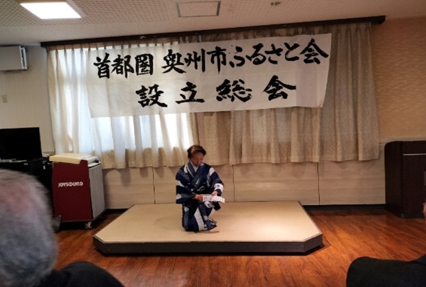 最後の5番目のふるさと会は、24日(月)に行われた「首都圏奥州市ふるさと会」設立総会でした。新団体設立に当たりこれまでの経過報告や来賓の方々の挨拶がありました。その後、アトラクションで「落語」「隅田川かっぽれ」等の披露があり懇親会に移りました。私も乾杯の音頭を取らせてもらいましたが、奥州市結成20周年という節目に当たり、大リーグ三年連続MVPの偉業を達成した大谷翔平選手の出身地でもあり、奥州市にはこれまでにない追い風となっていると話しました。岩手日報の方から大谷選手の号外も配られ、とても盛り上がった会となりました。私が驚いたのは、会の始めに撮った写真が帰る時には参会者全員に配られとても記念になった設立の会でした。